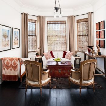 Эркер в гостиной в коричнево-бордовых тонах